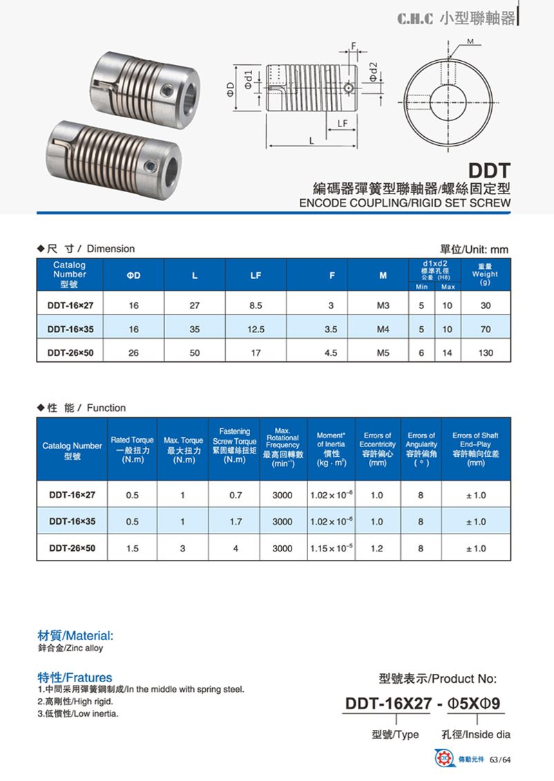 DDT編碼彈簧型聯軸器/螺絲固定型