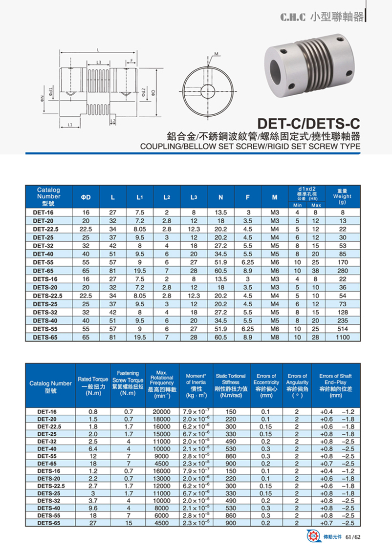 DET-C/DETS-C鋁合金/不鏽鋼波紋管/螺絲固定式/撓性聯軸器
