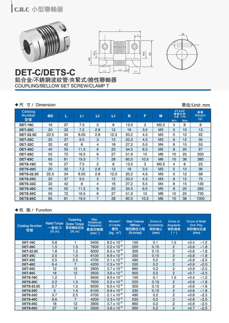 DET-C/DETS-C鋁合金/不鏽鋼波紋管/夾緊式/撓性聯軸器