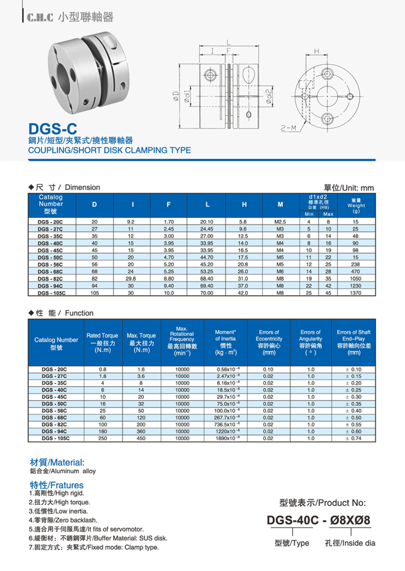 DGS-C鋼片/短型/夾緊式/撓性聯軸器