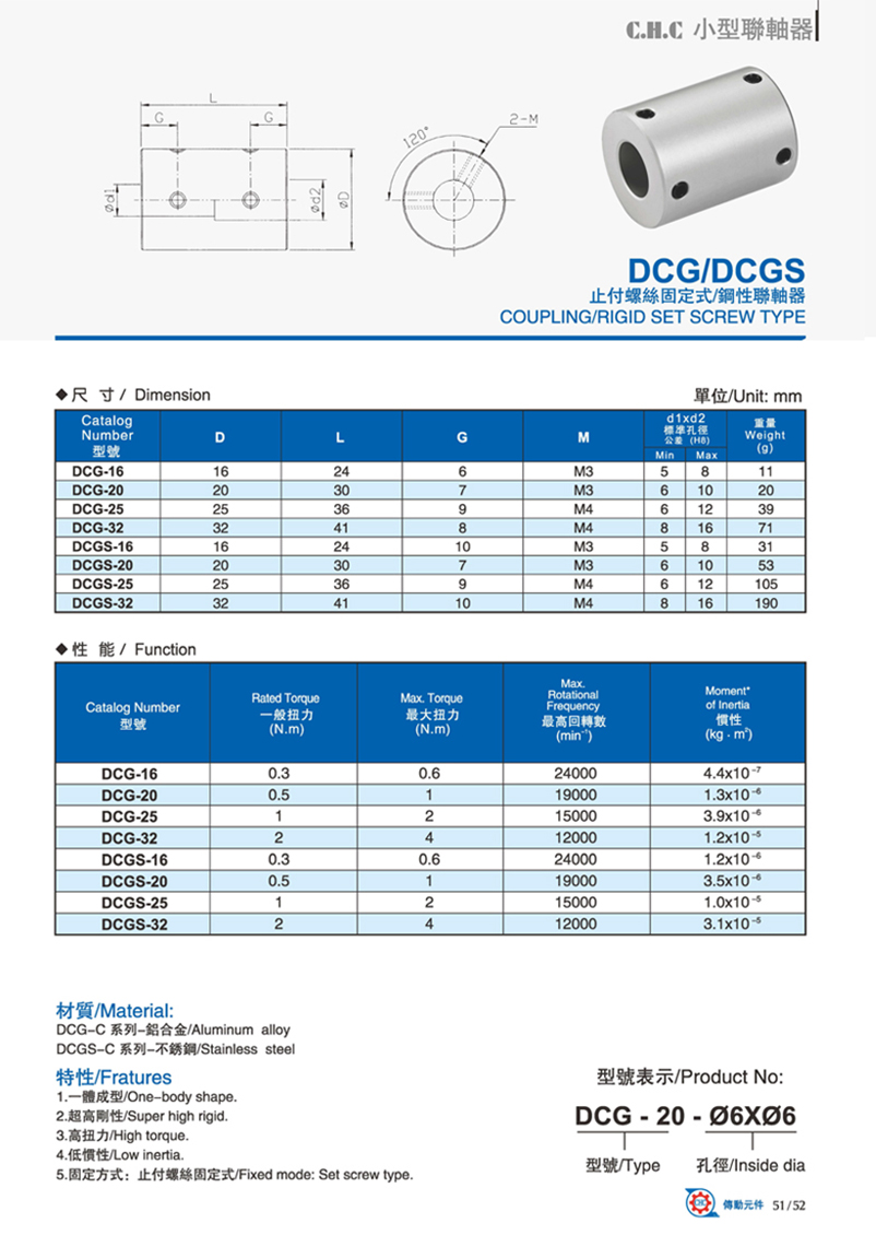 DCG/DCGS止付螺絲固定式/鋼性聯軸器