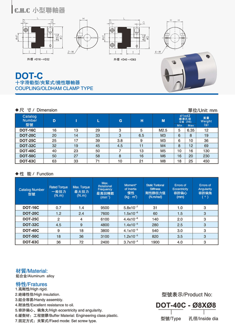 DOT-C十字滑動型/夾緊式/撓性聯軸器