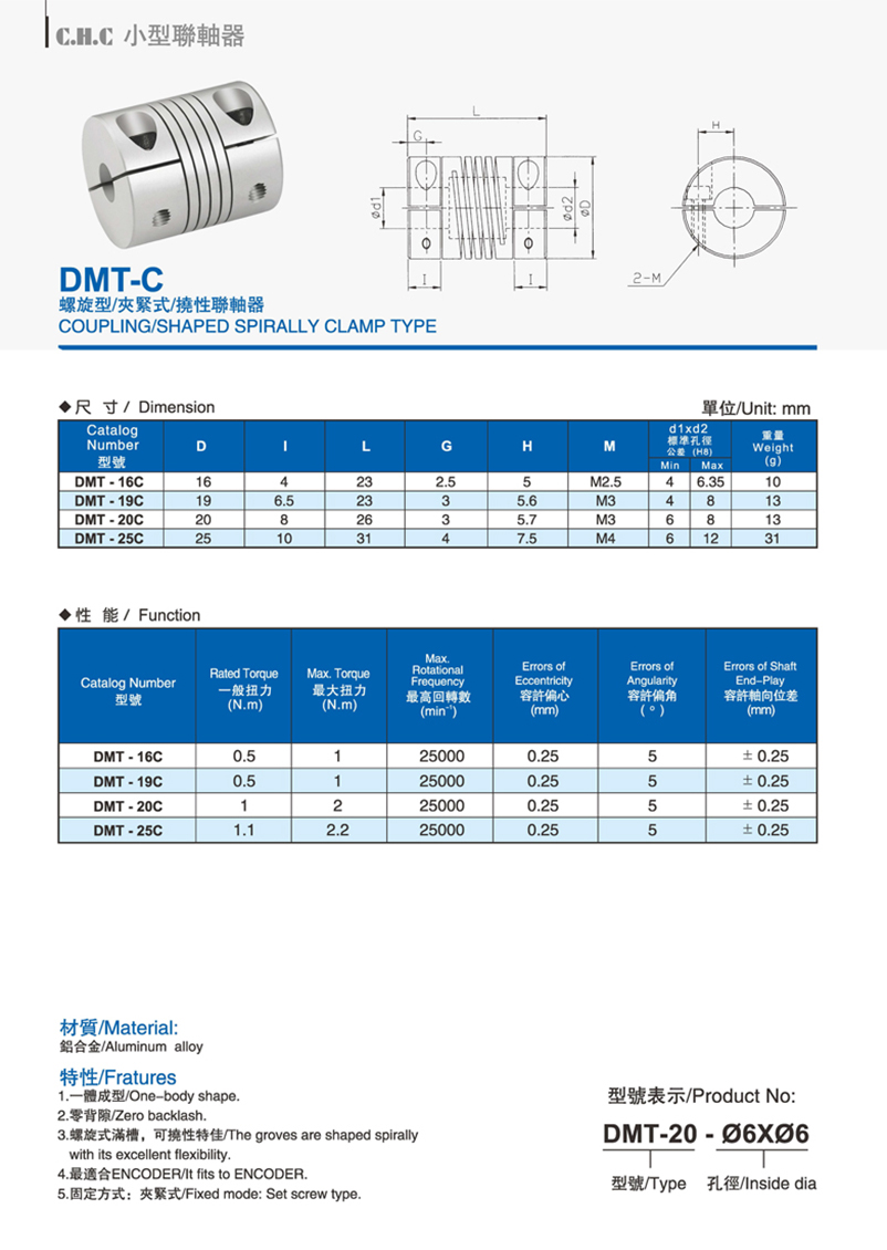 DMT-C螺旋型/夾緊式/撓性聯軸器