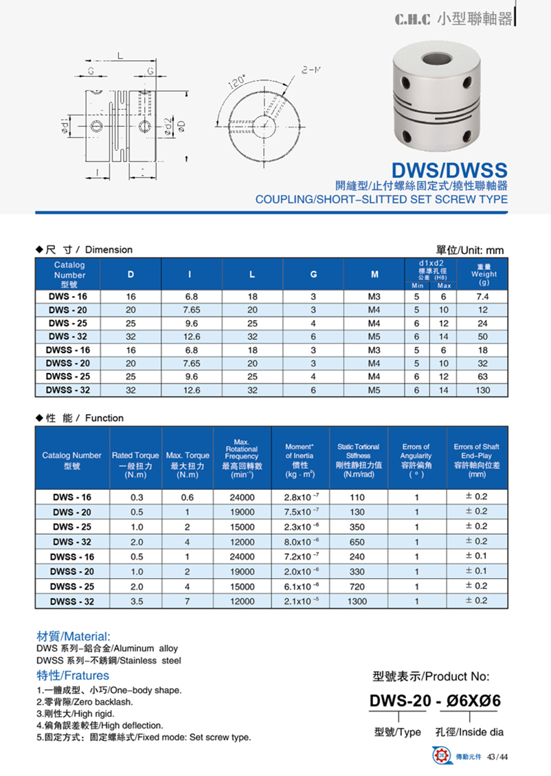 DWS/DWSS開縫型/止付螺絲固定式/撓性聯軸器