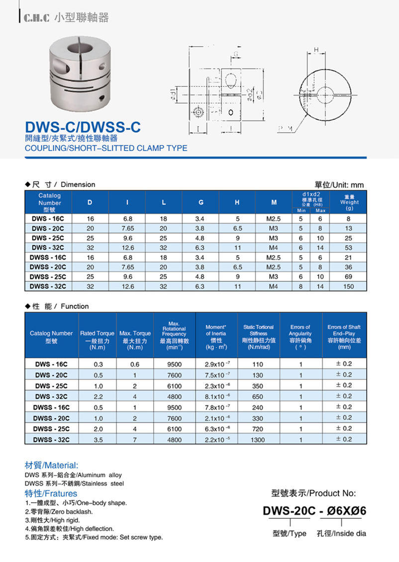 DWS-C/DWSS-C開縫型/夾緊式/撓性聯軸器
