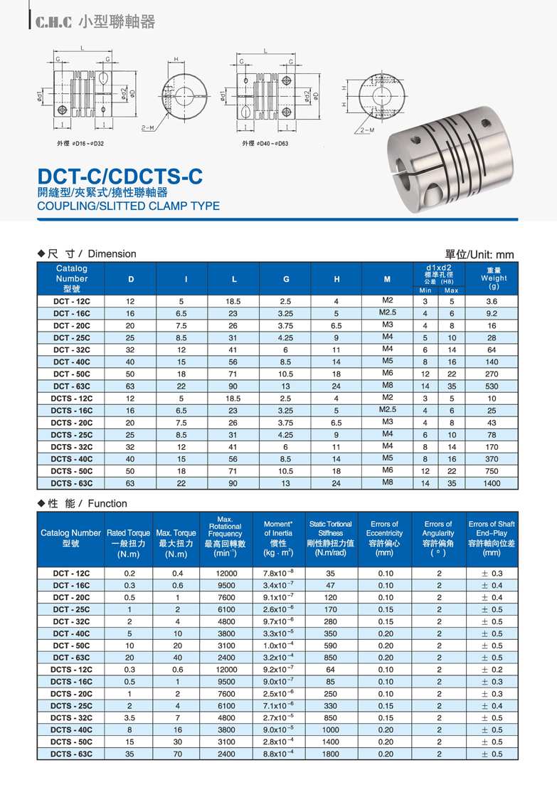 DCT-C/CDCTS-C開縫型/夾緊式/撓性聯軸器