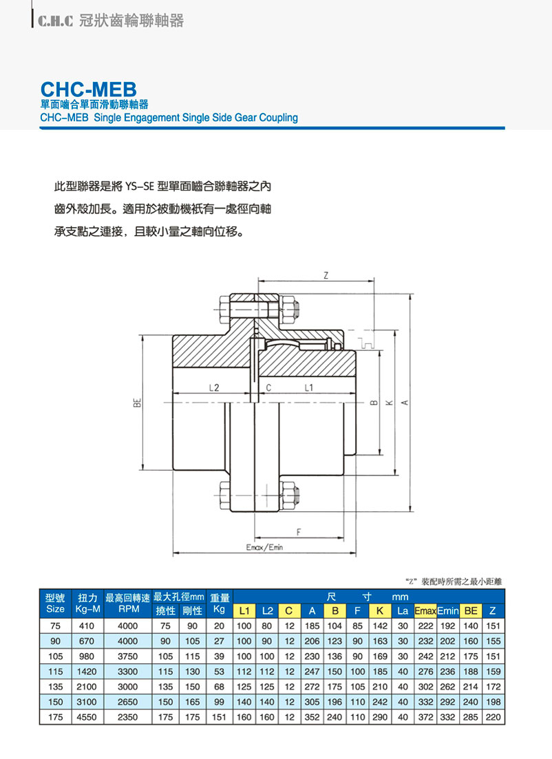 CHC-MEB單面嚙合單面滑動聯軸器